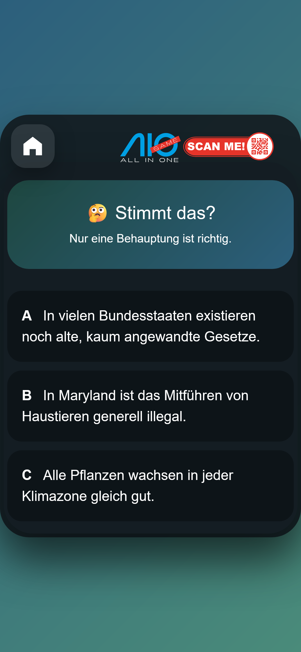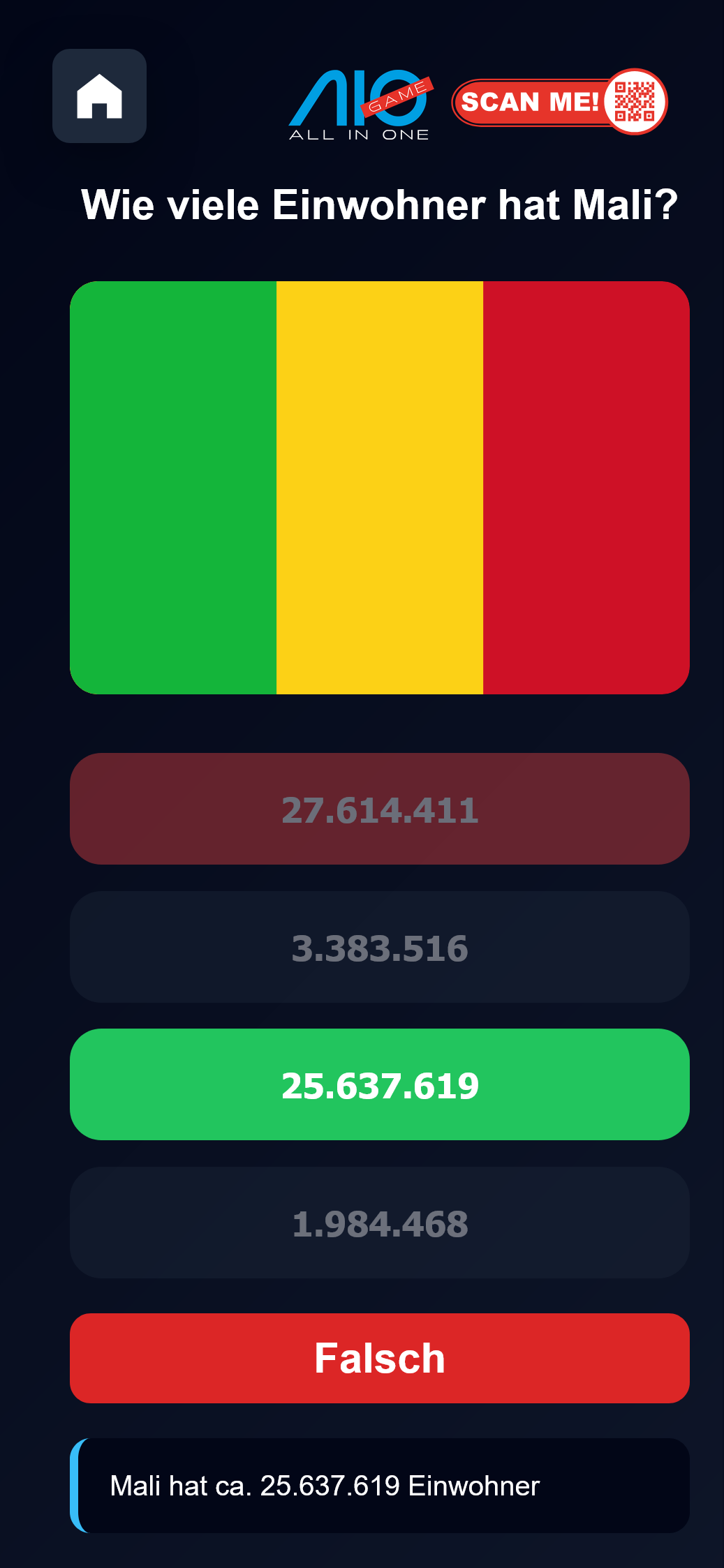 Einfach QR-Code scannen, Browser öffnen und loslegen. Wähle aus Quizspielen, Wahrheit und Pflicht oder unseren bald verfügbaren Partyspielen.